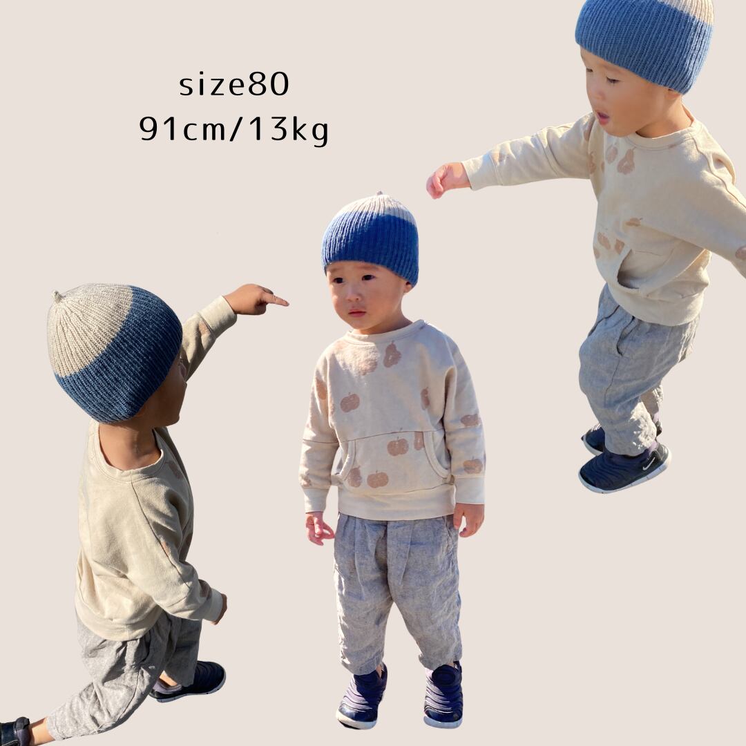 海外から取り寄せたオーガニックコットンのトレーナー素材(ミニ裏毛)、厚すぎず薄すぎず、アクティブなキッズにおすすめです。